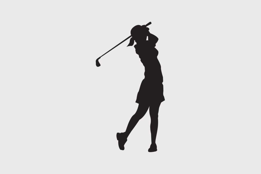 Αυτοκόλλητο τοίχου από βινύλιο που απεικονίζει μια γυναίκα να παίζει γκολφ.