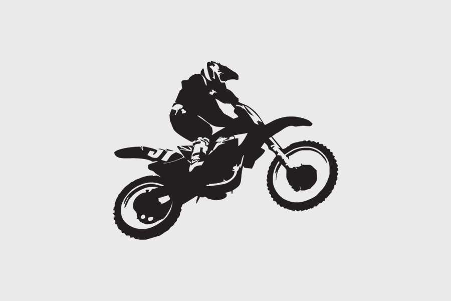Αυτοκόλλητο τοίχου από βινύλιο που απεικονίζει έναν αθλητή με μηχανή motocross σε άλμα.