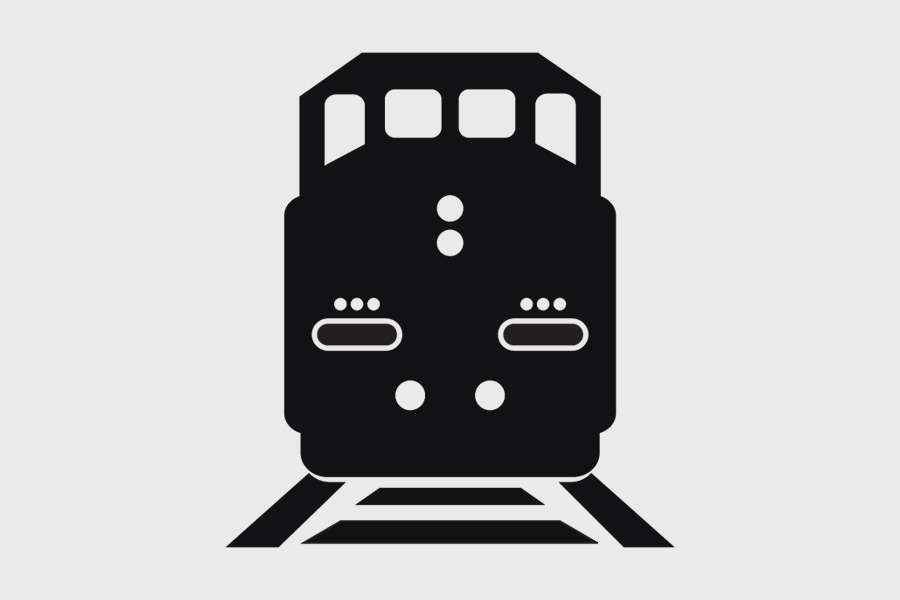 Αυτοκόλλητο τοίχου από βινύλιο που απεικονίζει το μπροστινό μέρος μιας μηχανής τραίνου πάνω σε ράγες.