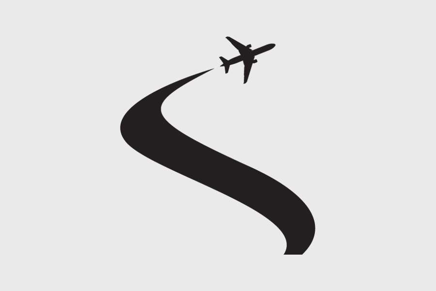 Αυτοκόλλητο τοίχου από βινύλιο που απεικονίζει τη σιλουέτα από ένα αεροπλάνο με γραμμή στο πίσω μέρος που υποδηλώνει πτήση.