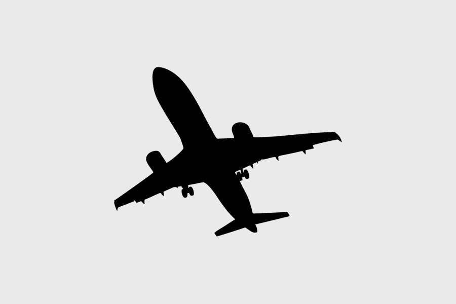 Αυτοκόλλητο τοίχου από βινύλιο που απεικονίζει τη σιλουέτα από ένα αεροπλάνο κατά την προσγείωση.