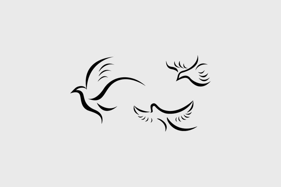 Αυτοκόλλητο τοίχου από βινύλιο που απεικονίζει τρία περιστέρια σε καλλιτεχνική απεικόνιση.