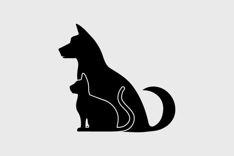 Αυτοκόλλητο τοίχου από βινύλιο που απεικονίζει τη σιλουέτα ενός σκύλου και μιας γάτας.
