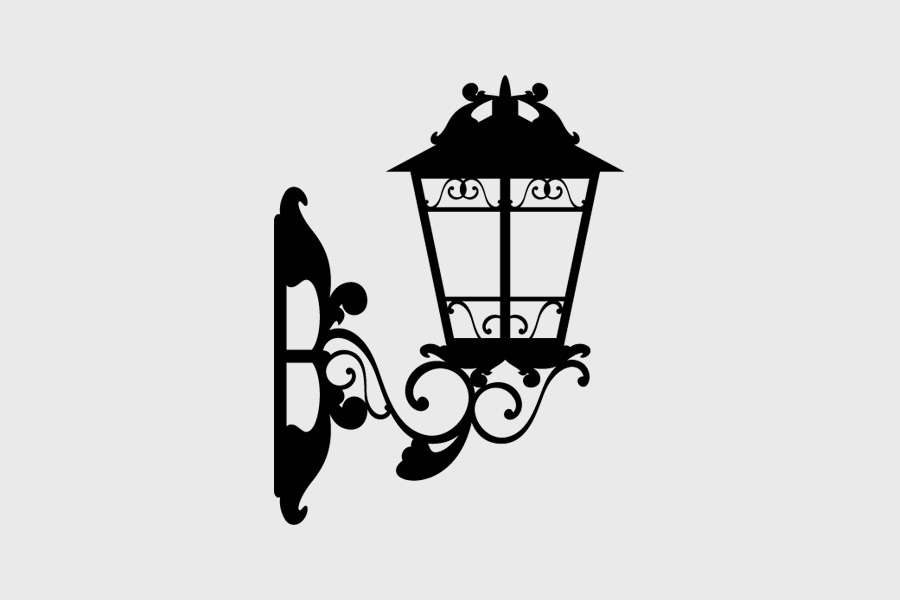 Αυτοκόλλητο τοίχου από βινύλιο που απεικονίζει ένα φωτιστικό δρόμου στον τοίχο και σε κλασικό σχήμα.