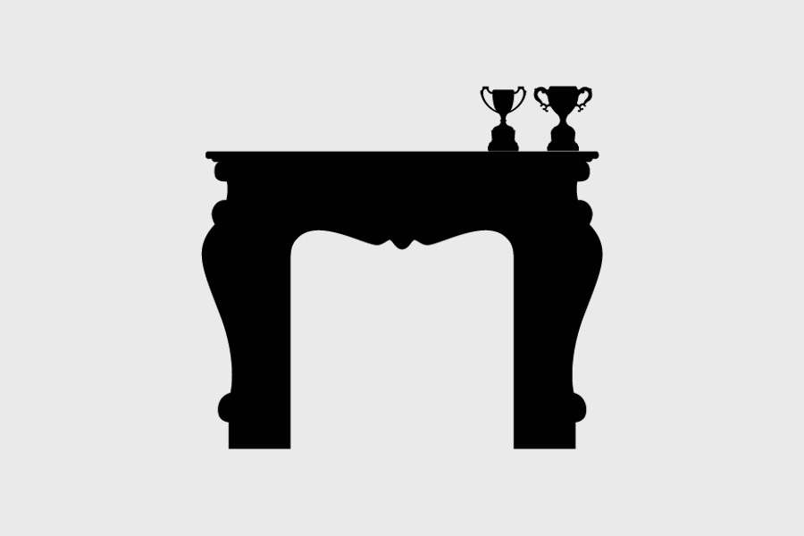 Αυτοκόλλητο τοίχου από βινύλιο που απεικονίζει την περιμετρική διακόσμηση από ένα τζάκι με 2 κύπελλα νικητή στο πάνω μέρος.