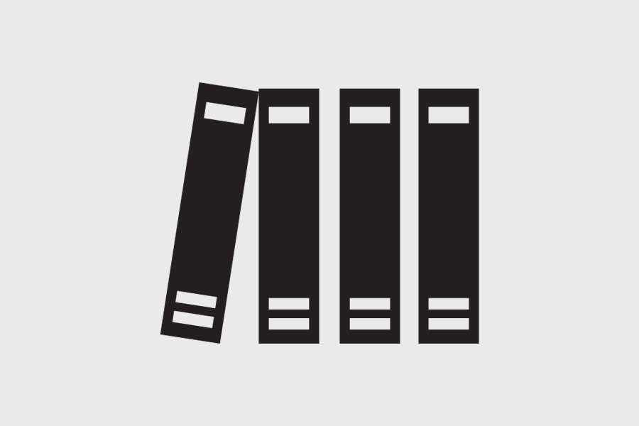 Αυτοκόλλητο τοίχου από βινύλιο που απεικονίζει τέσσερα ντοσιέ με μεγάλη ράχη με λευκές ετικέτες.