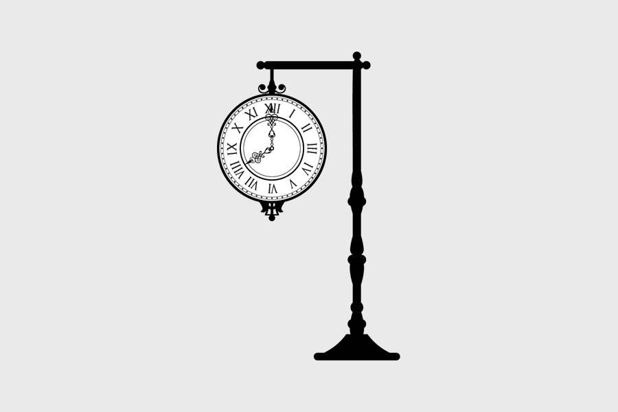 Αυτοκόλλητο τοίχου από βινύλιο που απεικονίζει ένα ρολόι που κρέμεται από μια κολόνα, με λευκές λεπτομέρειες.