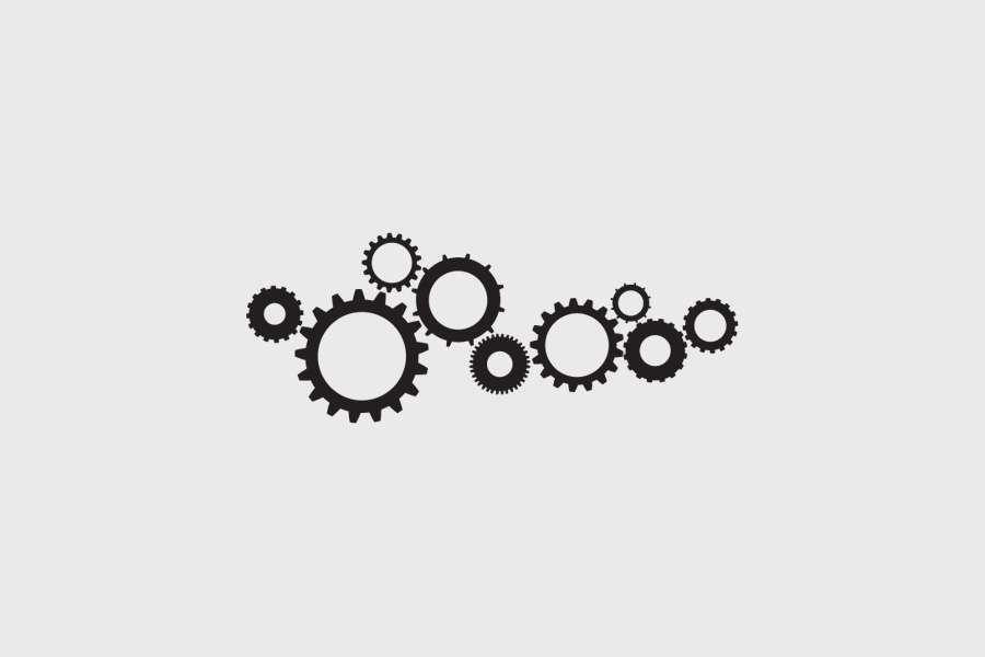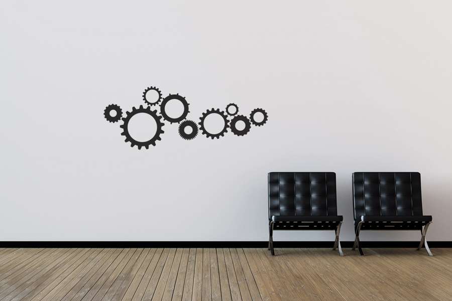 Αυτοκόλλητο τοίχου από βινύλιο που απεικονίζει διάφορα γρανάζια σε διάφορα μεγέθη και σχέδια.