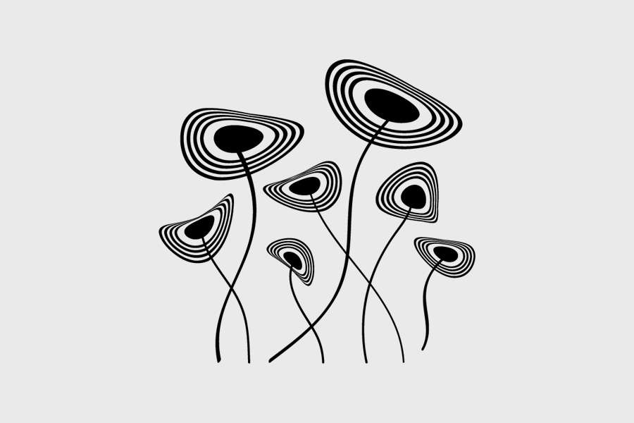 Αυτοκόλλητο τοίχου από βινύλιο που απεικονίζει διάφορους κύκλους με άσπρα μέρη και γραμμές που κάνουν τα σχέδια να μοιάζουν με λουλούδια.