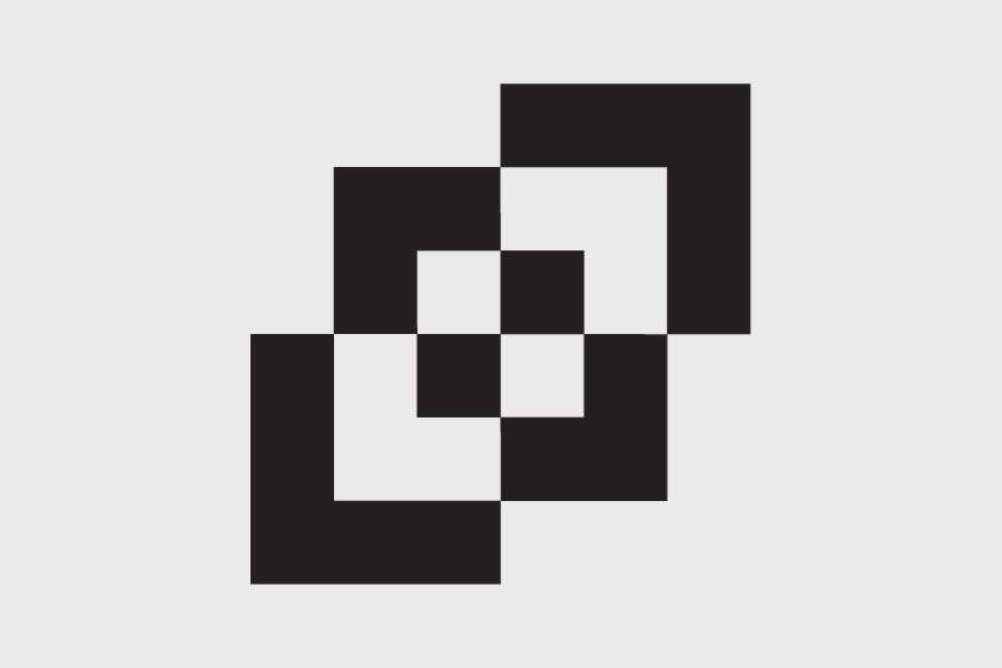 Αυτοκόλλητο τοίχου από βινύλιο που απεικονίζει τετράγωνα σχήματα που μπλέκουν το ένα με το άλλο με για να σχηματίσουν μεγαλύτερα τετράγωνα.