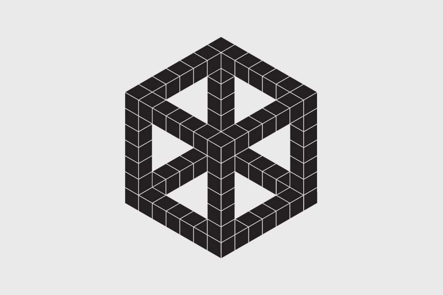 Αυτοκόλλητο τοίχου από βινύλιο που απεικονίζει το περίγραμμα ενός κύβου που αποτελείται από μικρότερους κύβους που φαίνονται μόνο οι πλευρές τους .