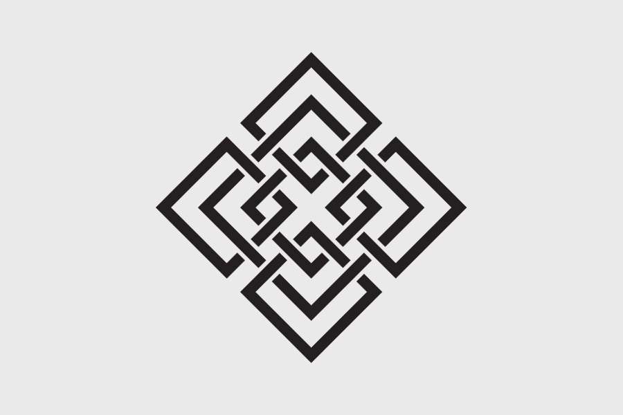 Αυτοκόλλητο τοίχου από βινύλιο που απεικονίζει τετράγωνα σχήματα σε περίγραμμα που μπλέκουν το ένα με το άλλο σε διάταξη σταυρού.