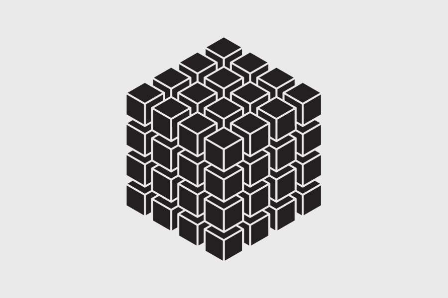 Αυτοκόλλητο τοίχου από βινύλιο που απεικονίζει ένα κύβο που αποτελείται από μικρότερους κύβους που φαίνονται μόνο οι πλευρές τους .