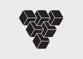 Αυτοκόλλητο τοίχου από βινύλιο που απεικονίζει σχήμα που παραπέμπει σε ανάποδο τρίγωνο και αποτελείται από μικρότερους κύβους που φαίνονται μόνο οι πλευρές τους .