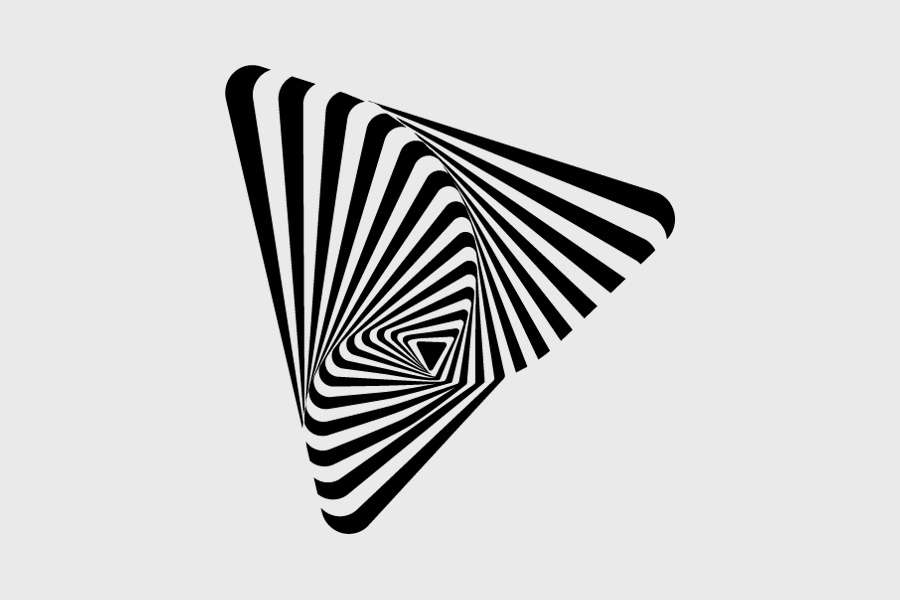 Αυτοκόλλητο τοίχου από βινύλιο που απεικονίζει σχήμα που παραπέμπει σε τρίγωνο σε περιστροφή και αποτελείται από μικρότερα τρίγωνα σε περίγραμμα.