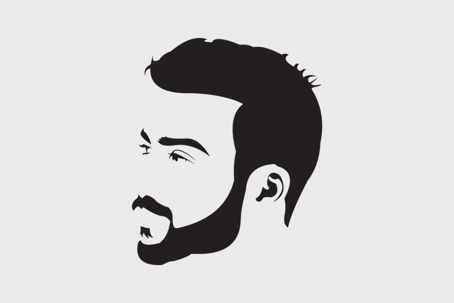 Αυτοκόλλητο τοίχου από βινύλιο που απεικονίζει τα χαρακτηριστικά του προσώπου ενός νεαρού άντρα με μούσι.