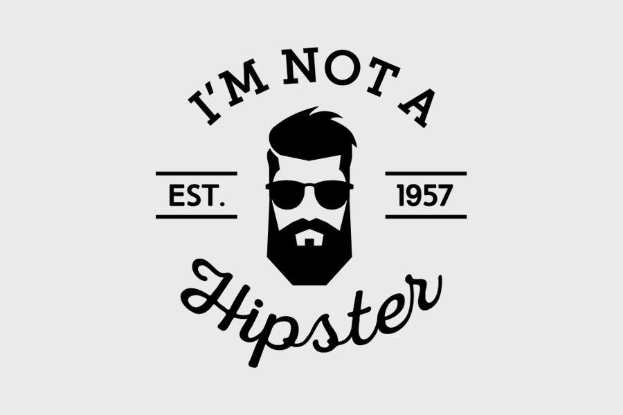 Αυτοκόλλητο τοίχου από βινύλιο που απεικονίζει τα χαρακτηριστικά του προσώπου ενός νεαρού άντρα με μουστάκι, μούσι και γυαλιά και παπιγιόν και περιμετρικά τη φράση "I'M NOT A Hipster".