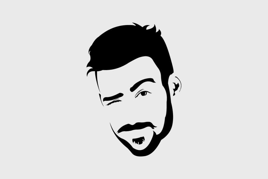 Αυτοκόλλητο τοίχου από βινύλιο που απεικονίζει τα χαρακτηριστικά του προσώπου ενός νεαρού άντρα με μούσι.
