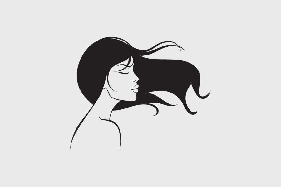 Αυτοκόλλητο τοίχου από βινύλιο που απεικονίζει μια κοπέλα με μακριά μαλλιά που ανεμίζουν.