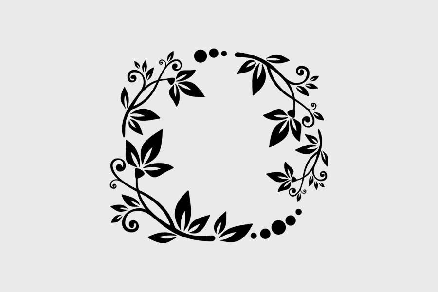 Αυτοκόλλητο τοίχου από βινύλιο που απεικονίζει φυτά με φύλλα και κύκλους σε κυκλική διάταξη.