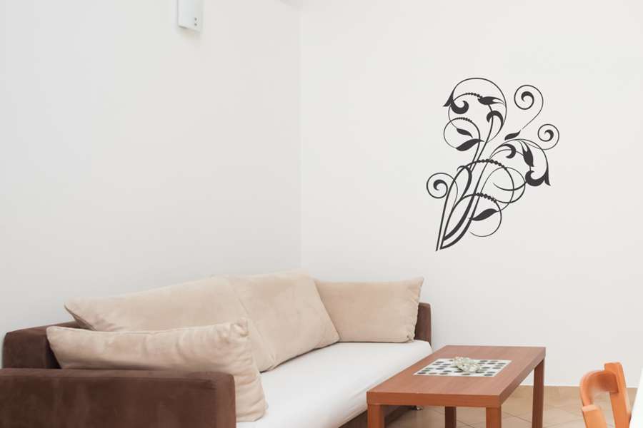 Αυτοκόλλητο τοίχου από βινύλιο που απεικονίζει διακοσμητικό σχέδιο με με κυματιστές γραμμές και φύλλα.