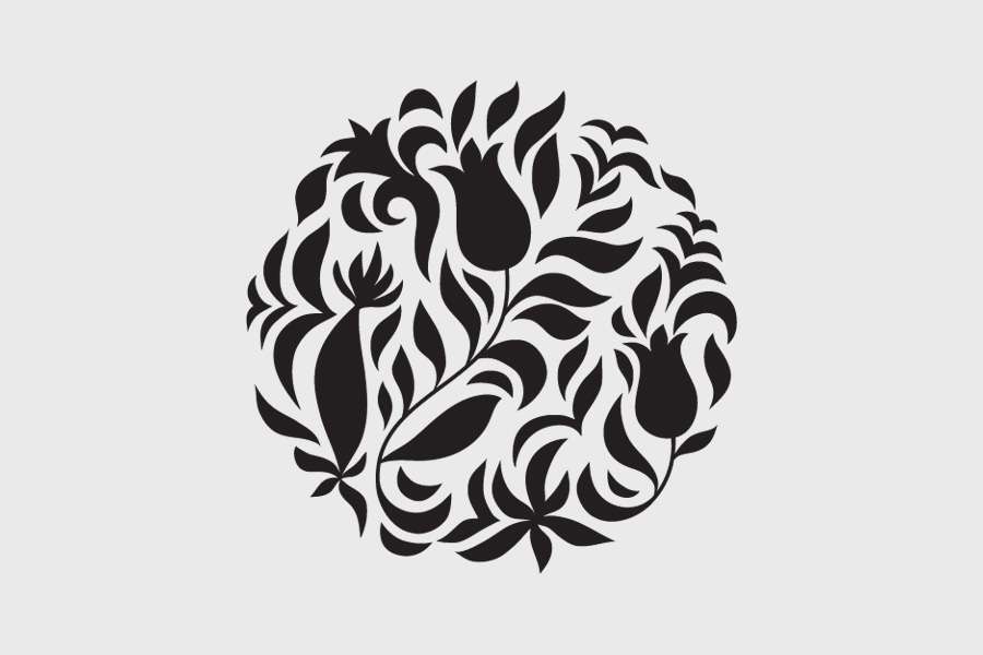 Αυτοκόλλητο τοίχου από βινύλιο που απεικονίζει διακοσμητικό σχέδιο με λουλούδια και φύλλα που σχηματίζουν έναν κύκλο.