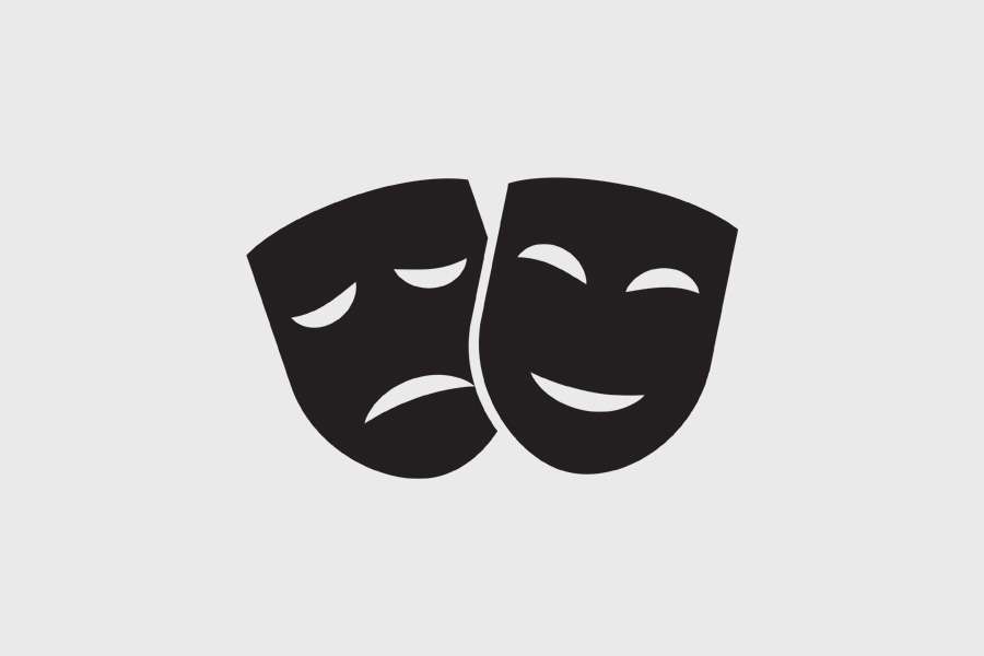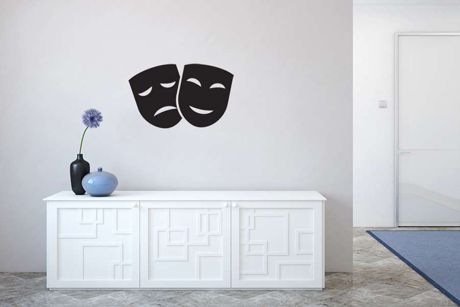 Αυτοκόλλητο τοίχου από βινύλιο που απεικονίζει δύο μάσκες θεάτρου.