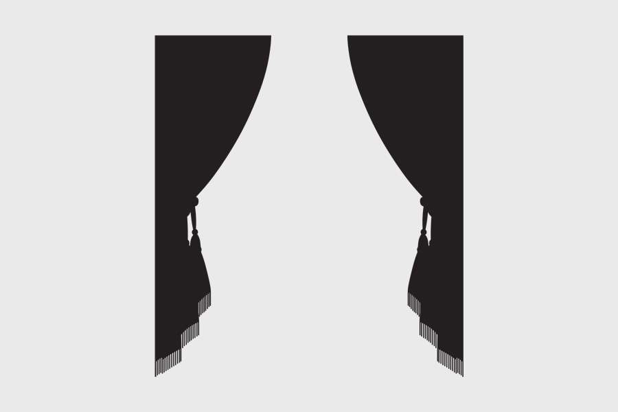 Αυτοκόλλητο τοίχου από βινύλιο που απεικονίζει μαζεμένες κουρτίνες θεάτρου.