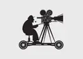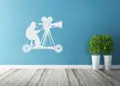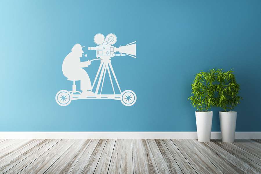 Αυτοκόλλητο τοίχου από βινύλιο που απεικονίζει ένα κινηματογραφιστή πάνω σε κινούμενη πλατφόρμα με κάμερα.