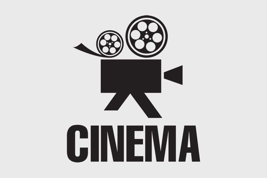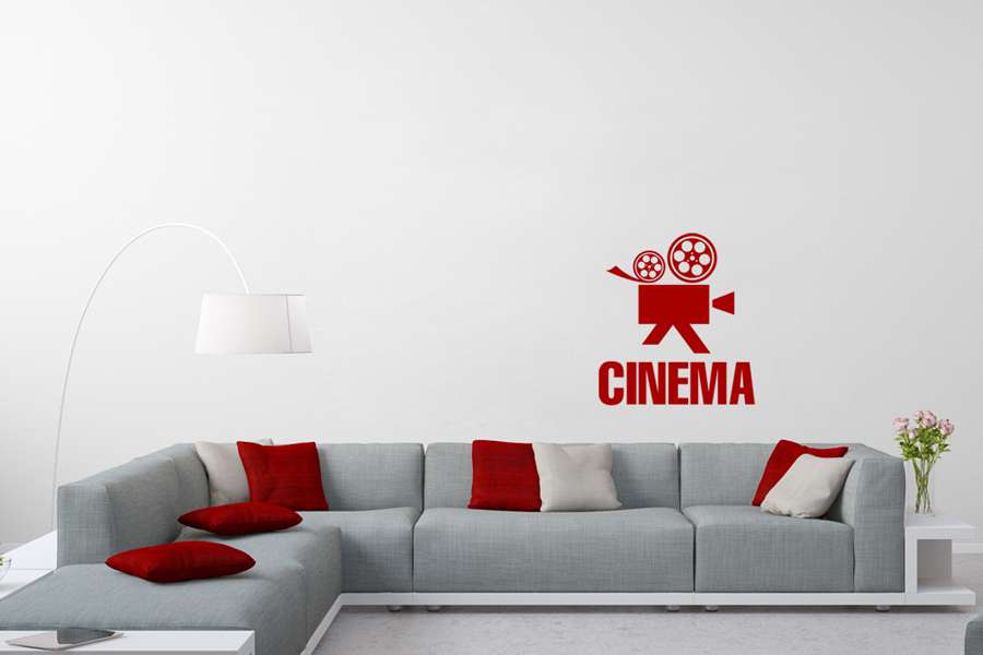 Αυτοκόλλητο τοίχου από βινύλιο που απεικονίζει μια κινηματογραφική κάμερα με τη λέξη "CINEMA" από κάτω.