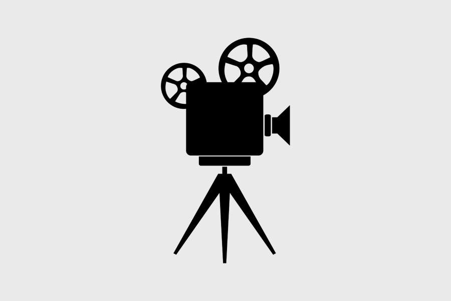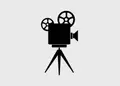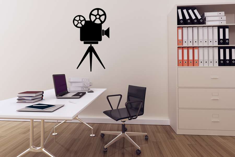 Αυτοκόλλητο τοίχου από βινύλιο που απεικονίζει μια κινηματογραφική κάμερα πάνω σε τρίποδο.