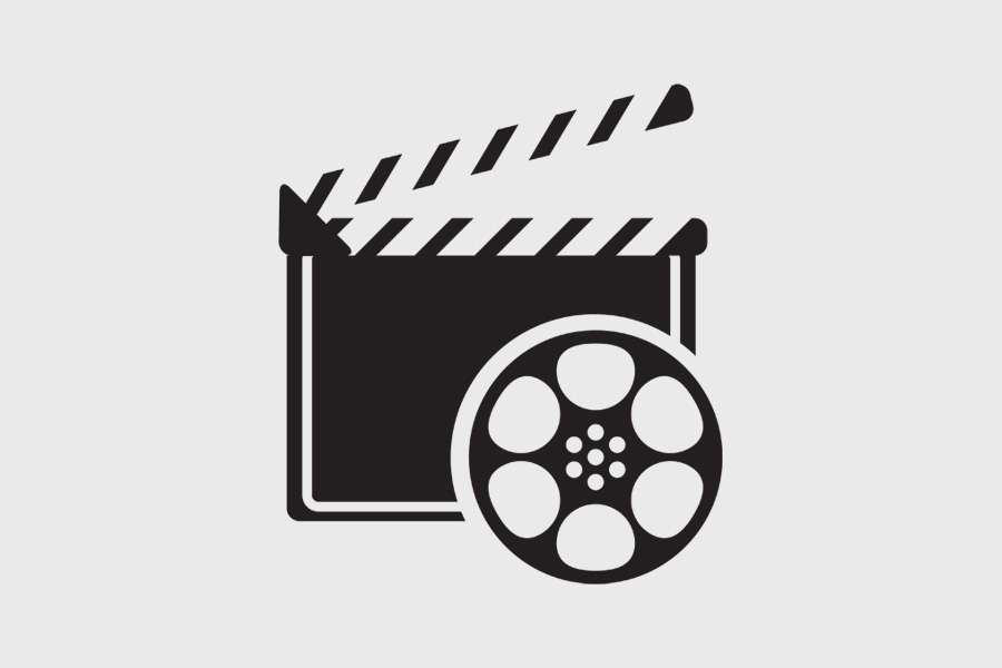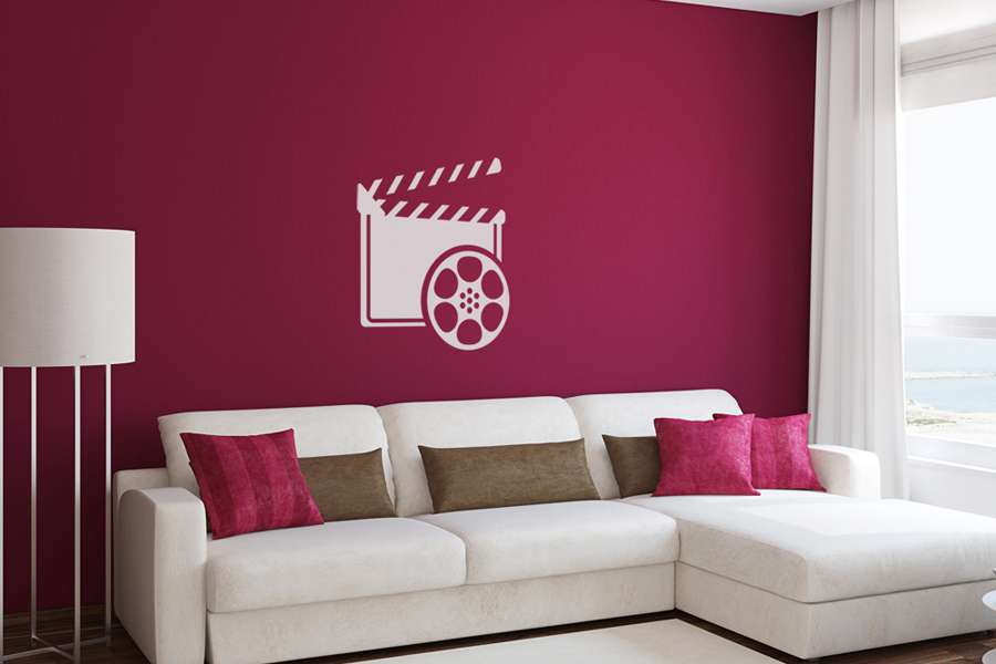 Αυτοκόλλητο τοίχου από βινύλιο που απεικονίζει μια κλακέτα μαζί με μια μπομπίνα κινηματογραφικού φιλμ.