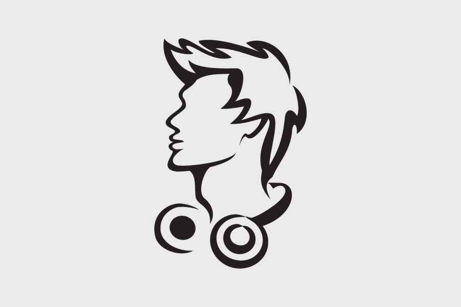 Αυτοκόλλητο τοίχου από βινύλιο που απεικονίζει ένα νεαρό άντρα με ένα ζευγάρι ακουστικά περασμένα στο λαιμό του, σε περίγραμμα.