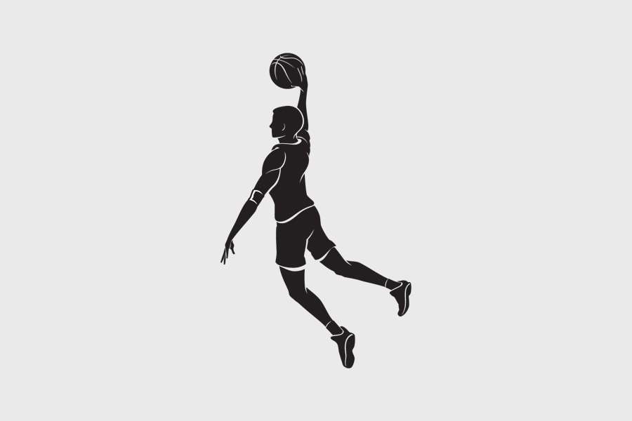 Αυτοκόλλητο τοίχου από βινύλιο που απεικονίζει έναν παίκτη του μπάσκετ σε κίνηση.