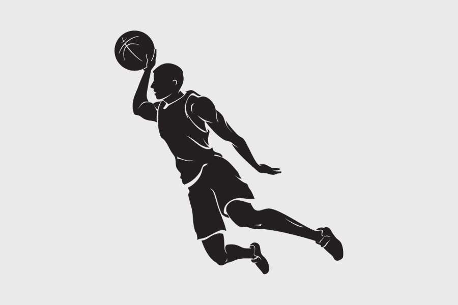 Αυτοκόλλητο τοίχου από βινύλιο που απεικονίζει έναν παίκτη του μπάσκετ σε κίνηση.