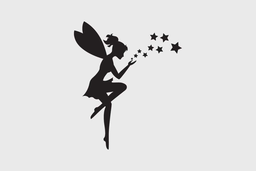 Αυτοκόλλητο τοίχου από βινύλιο που απεικονίζει μια νεράιδα. με φτερά και αστέρια στα χέρια.