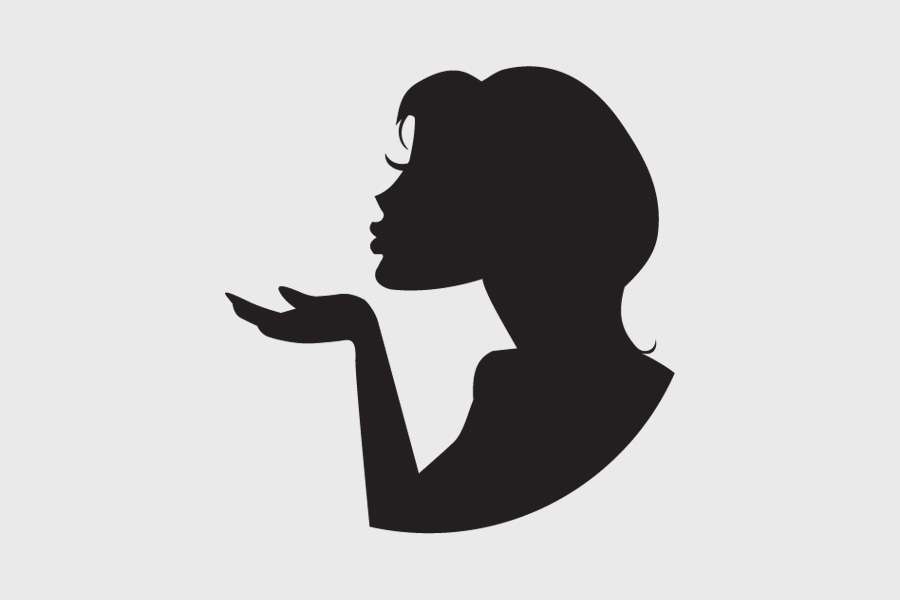 Αυτοκόλλητο τοίχου από βινύλιο που απεικονίζει μια κοπέλα σε προφίλ που στέλνει φιλιά.