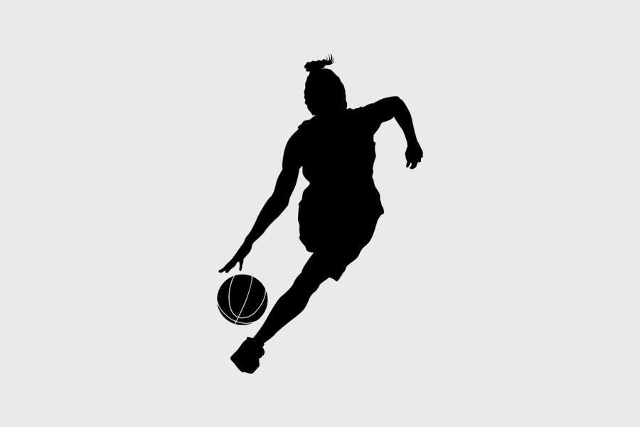 Αυτοκόλλητο τοίχου από βινύλιο που απεικονίζει μια παίκτρια του μπάσκετ σε κίνηση.