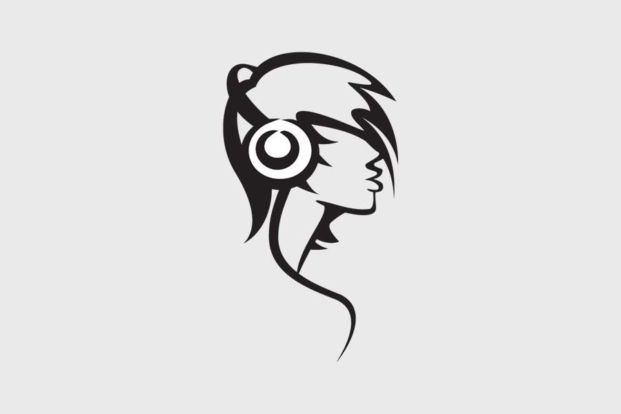 Αυτοκόλλητο τοίχου από βινύλιο που απεικονίζει μια νεαρή κοπέλα με ένα ζευγάρι ακουστικά στα αυτιά της, σε περίγραμμα.