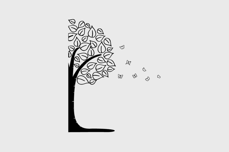 Αυτοκόλλητο τοίχου από βινύλιο που απεικονίζει μισό κορμό δέντρου με φύλλα, και πεταλούδες.