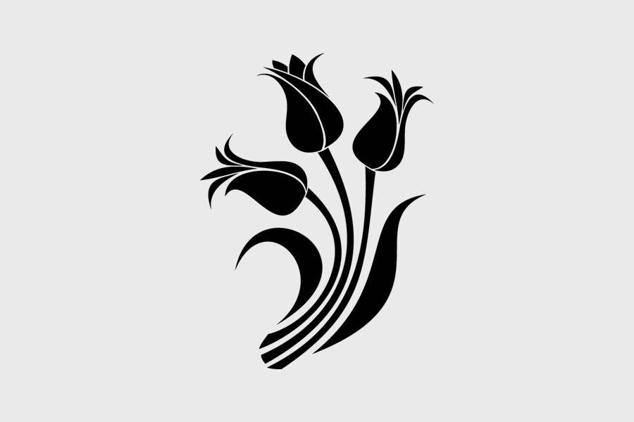 Αυτοκόλλητο τοίχου από βινύλιο που απεικονίζει τρία λουλούδια με φύλλα.