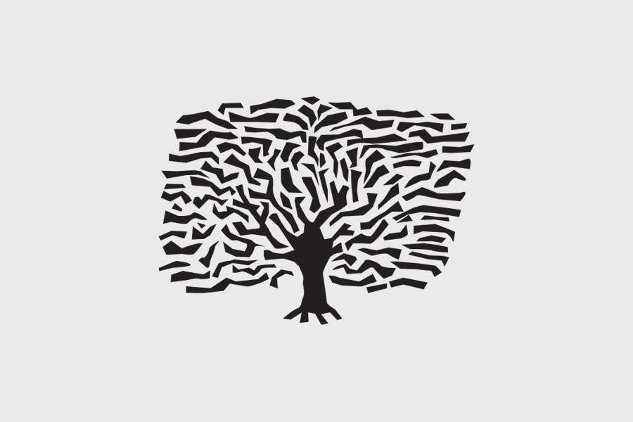 Αυτοκόλλητο τοίχου από βινύλιο που απεικονίζει ένα δέντρο με κορμό και φύλλα από αφηρημένα σχέδια.