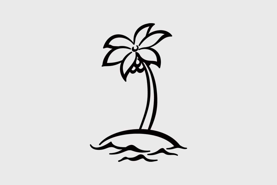 Αυτοκόλλητο τοίχου από βινύλιο που απεικονίζει ένα φοίνικα πάνω σε νησάκι και κύματα.