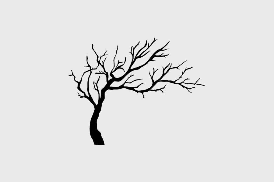 Αυτοκόλλητο τοίχου από βινύλιο που απεικονίζει ένα δέντρο με κορμό σε κλιση και κλαδιά χωρίς φύλλα.