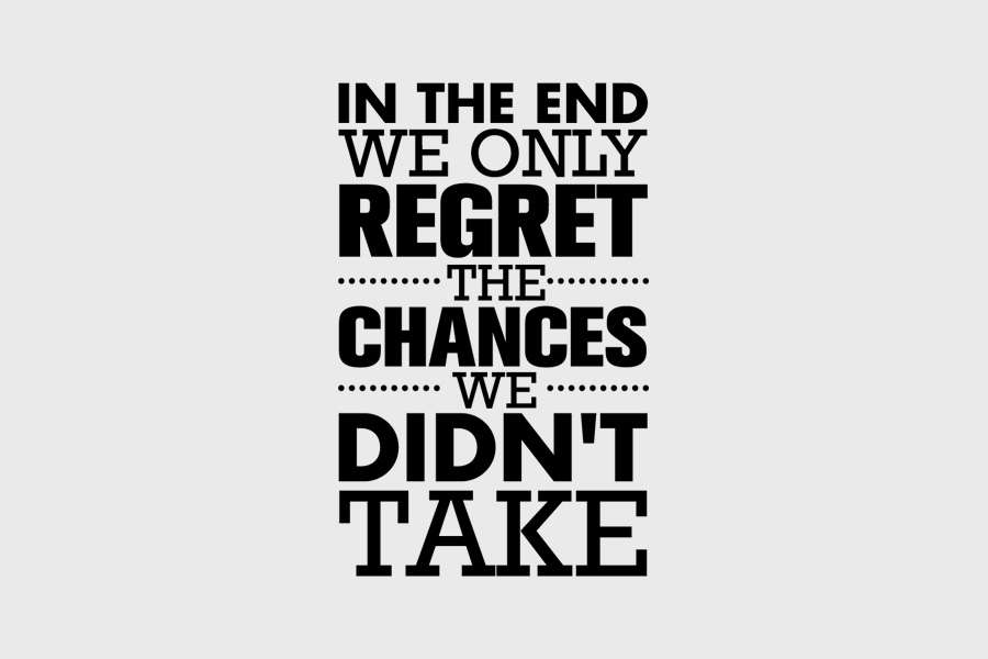 Αυτοκόλλητο τοίχου από βινύλιο με τη φράση "In the end we only regret the chances we didn't take".