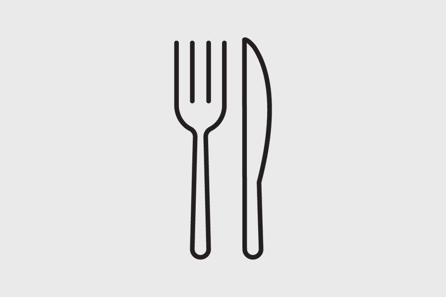 Αυτοκόλλητο τοίχου από βινύλιο που απεικονίζει ένα πιρούνι και ένα μαχαίρι σε περίγραμμα.