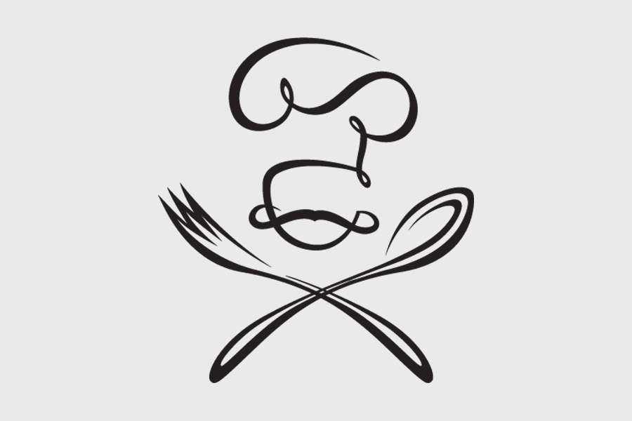 Αυτοκόλλητο τοίχου από βινύλιο που απεικονίζει τη μορφή ενός σεφ μαζί με ένα πιρούνι και ένα κουτάλι.