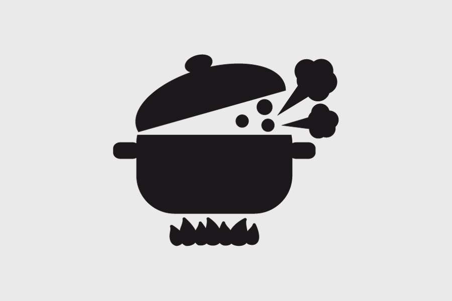 Αυτοκόλλητο τοίχου από βινύλιο που απεικονίζει μια κατσαρόλα πάνω από φωτιά με ατμούς να βγαίνουν από το καπάκι.