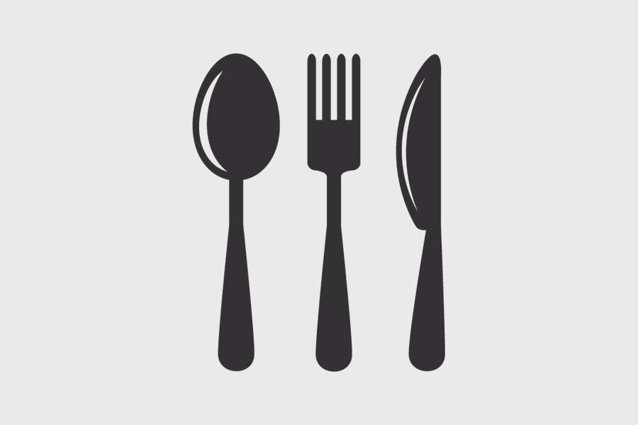 Αυτοκόλλητο τοίχου από βινύλιο που απεικονίζει ένα κουτάλι, ένα πιρούνι και ένα μαχαίρι.