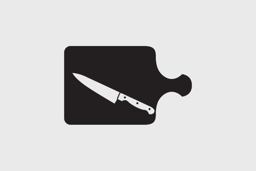 Αυτοκόλλητο τοίχου από βινύλιο που απεικονίζει ένα ξύλο κοπής με ένα λευκό μαχαίρι.